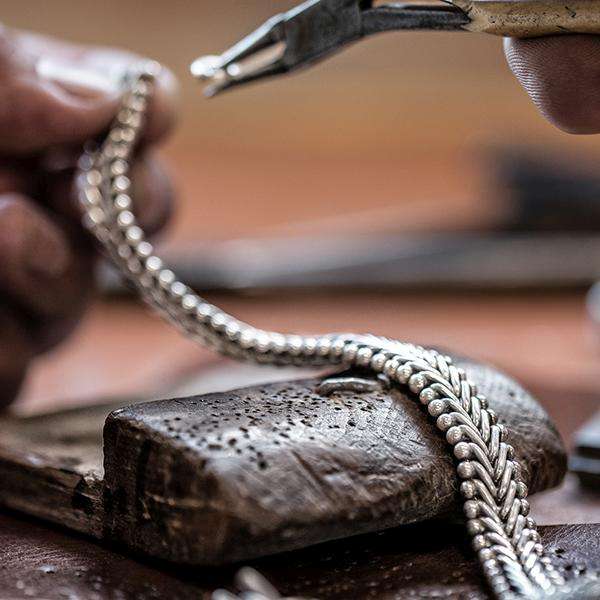 Every day our talented silversmiths are striving at perfecting the SILK designs. Each piece of jewellery is made piece by piece and with the utmost attention to detail and precision. For example it takes a silversmith three to four days to make one single bracelet. This requires pure craftsmanship and a lot of experience.